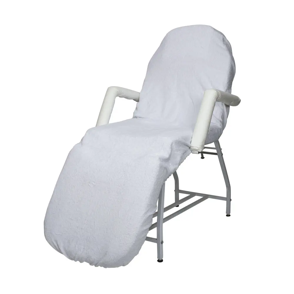 Защитный чехол на косметологическое кресло позволит решить проблему загрязнения обивки кресла и продлит срок эксплуатации оборудования, сохранив его презентабельный внешний вид. Скрытая под чехлом обшивка надежно защищена от воздействия косметических средств и прочих внешних загрязнений. Для изготовления чехла используется прочная махра белого цвета. Она приятна на ощупь и комфортная для клиента, позволяет соблюдать санитарно-гигиенические требования