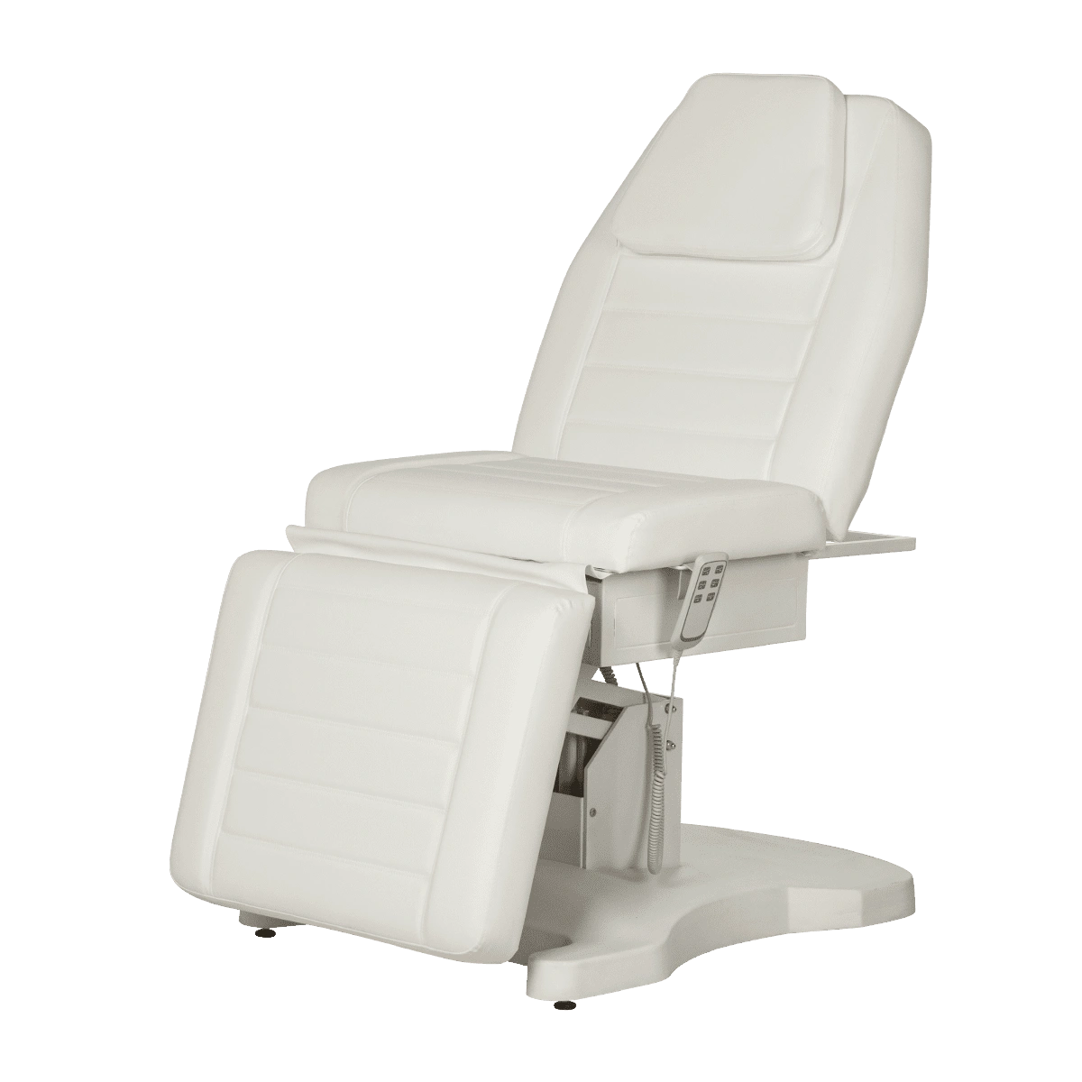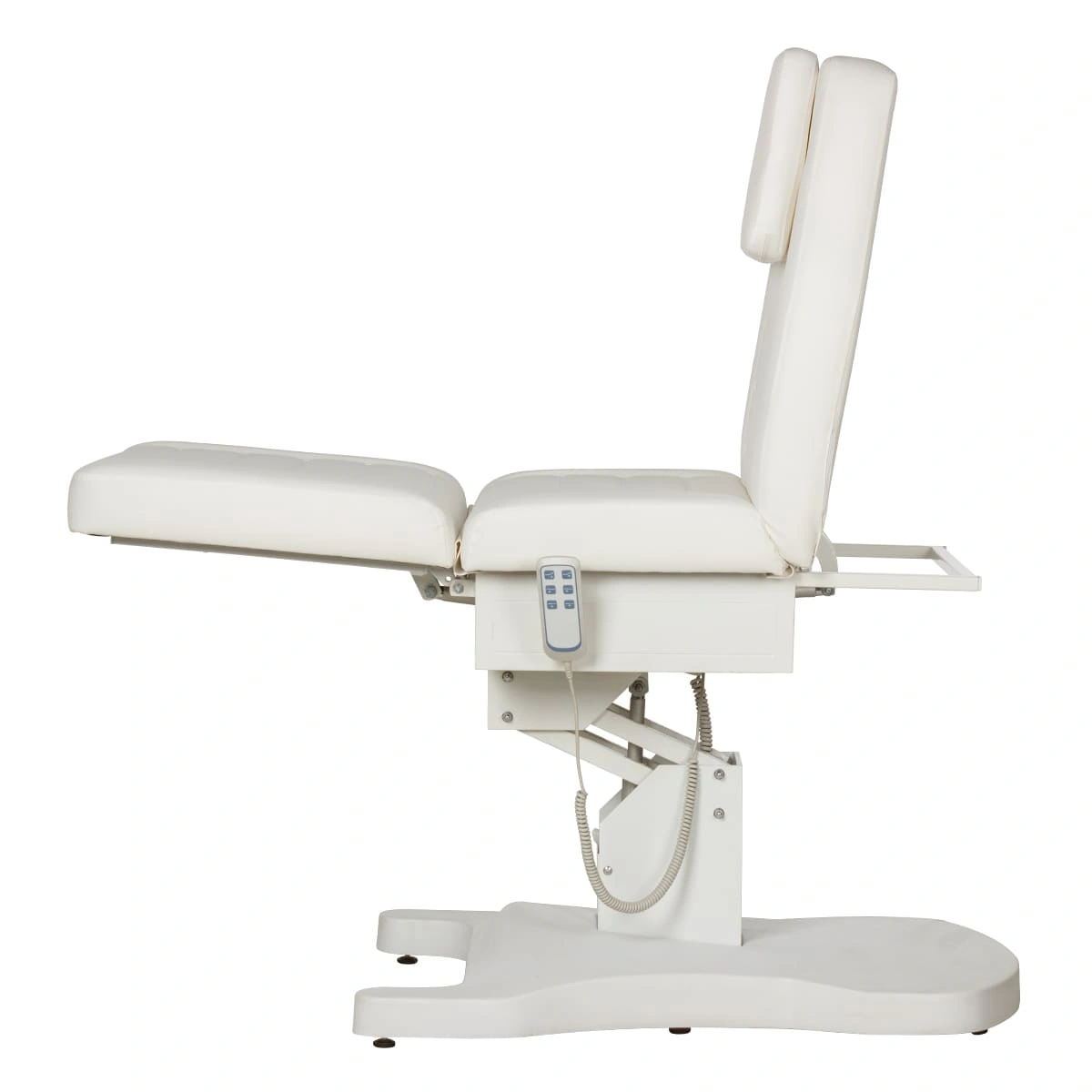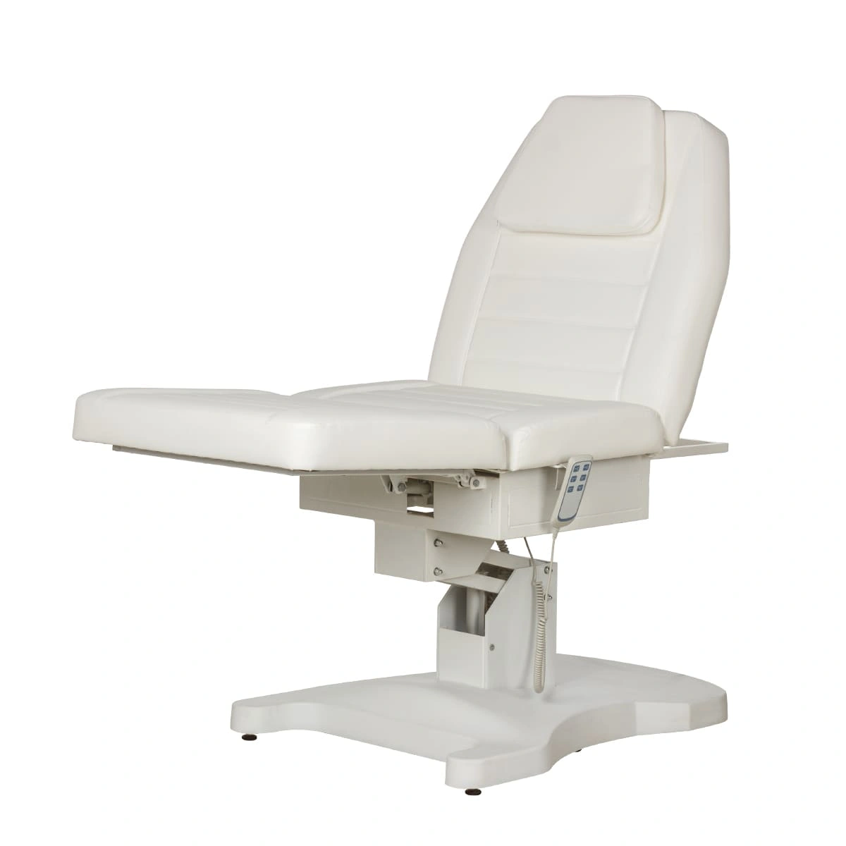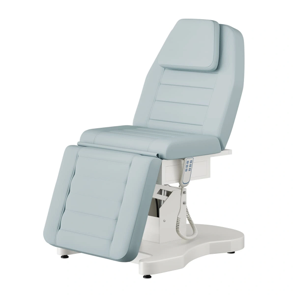 Функциональная косметологическая кушетка Гранда – это профессиональное оборудование высокого уровня. Подъем кресла, регулирование положения спинки и подножки осуществляется с помощью трех электромоторов. Для управления электроприводом предусмотрен удобный пульт, с держателем боковой части сиденья. Кушетка имеет увеличенную грузоподъемность, при этом основание спроектировано максимально удобно для работы мастера, не мешает при проведении процедур. Ширина кушетки больше стандартных размеров, отсутствуют подлокотники. Эта кушетка обеспечит необходимый комфорт клиентам и мастерам в процессе различных косметологических и массажных процедур. Обивка кресла устойчива к воздействию влаги, косметических и дезинфицирующих средств.