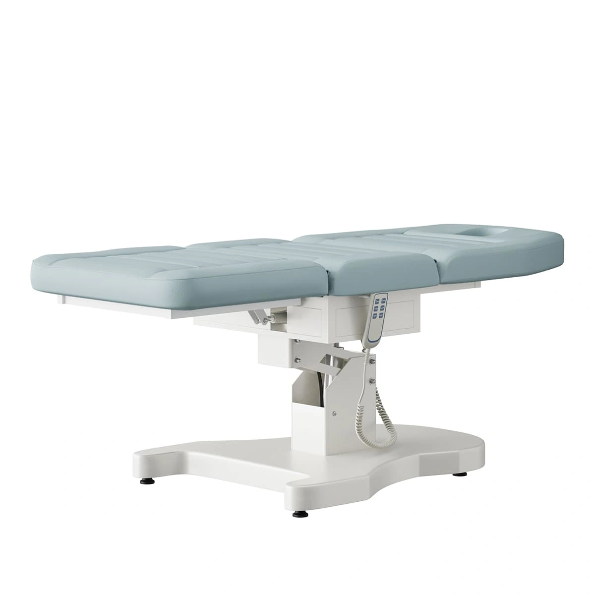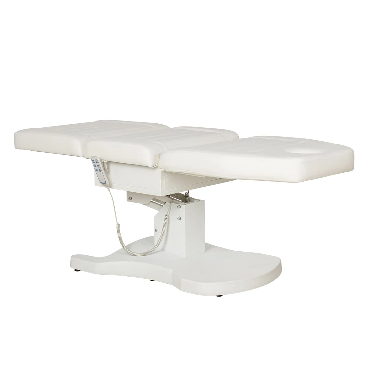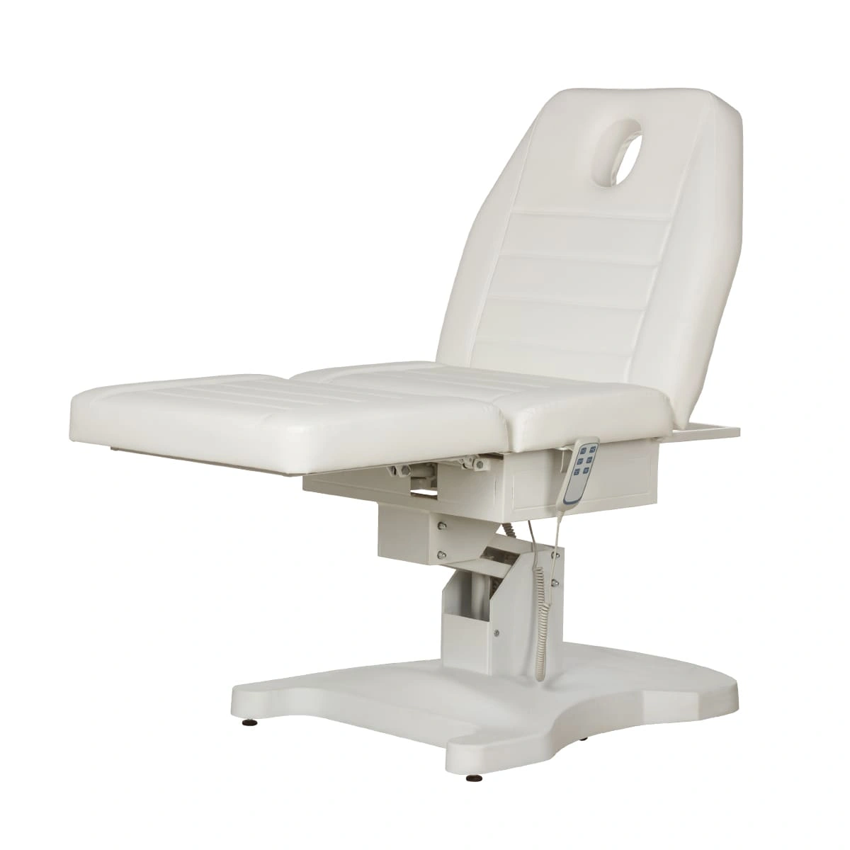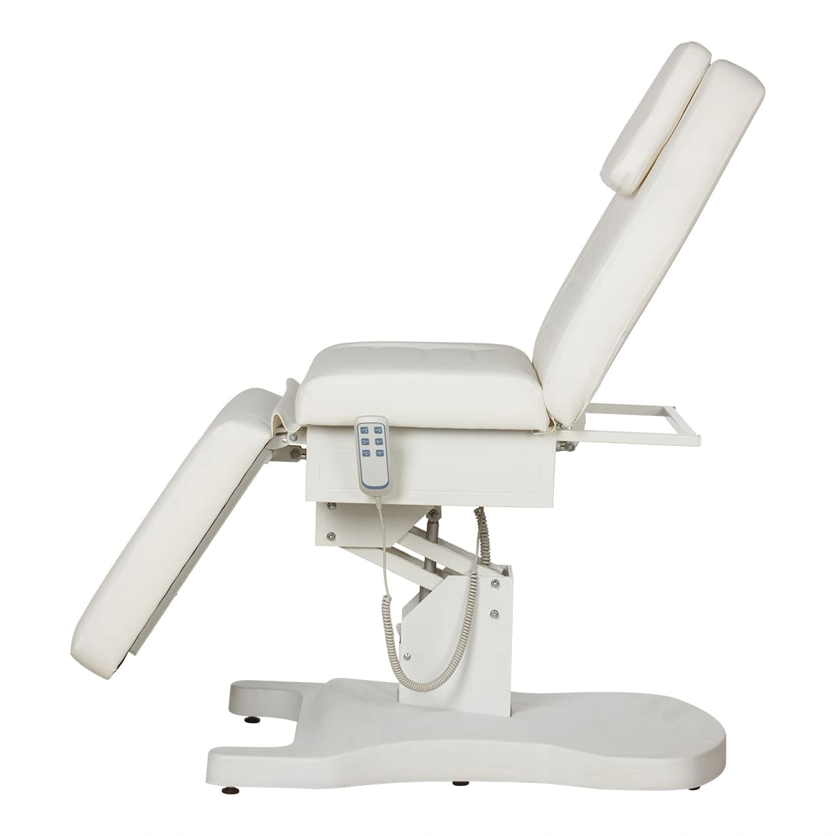 Функциональная косметологическая кушетка Гранда – это профессиональное оборудование высокого уровня. Подъем кресла, регулирование положения спинки и подножки осуществляется с помощью трех электромоторов. Для управления электроприводом предусмотрен удобный пульт, с держателем боковой части сиденья. Кушетка имеет увеличенную грузоподъемность, при этом основание спроектировано максимально удобно для работы мастера, не мешает при проведении процедур. Ширина кушетки больше стандартных размеров, отсутствуют подлокотники. Эта кушетка обеспечит необходимый комфорт клиентам и мастерам в процессе различных косметологических и массажных процедур. Обивка кресла устойчива к воздействию влаги, косметических и дезинфицирующих средств.