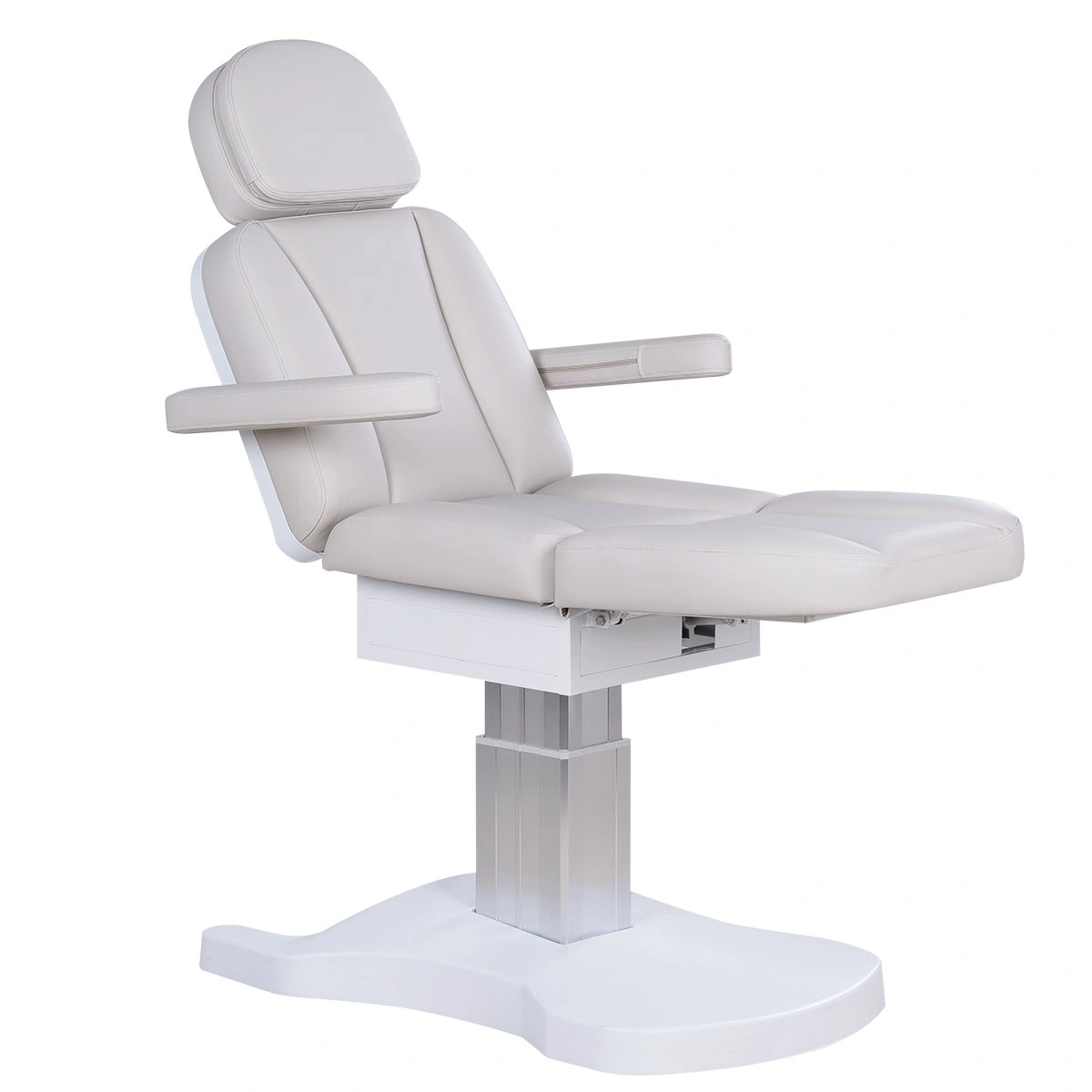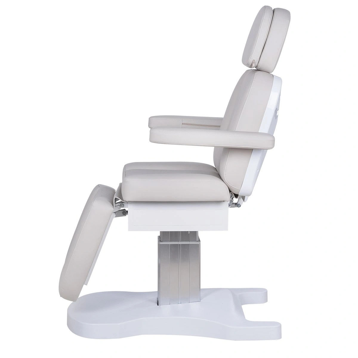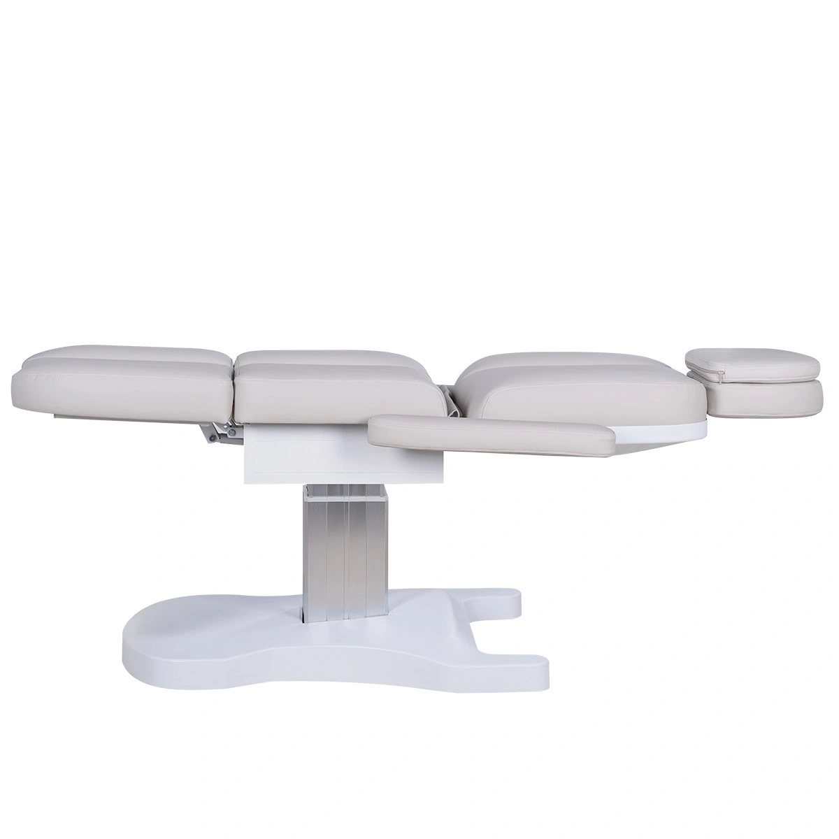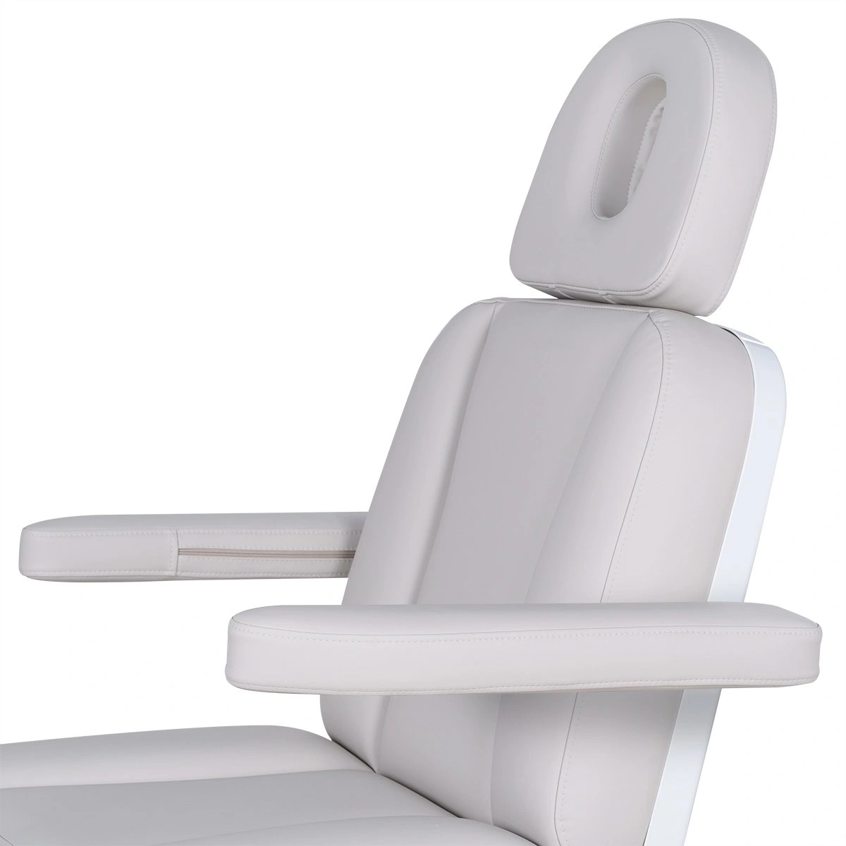 Три электромотора позволяют быстро и без усилий настроить высоту, угол наклона спинки и икроножной секции. Особое внимание уделено комфорту: инновационные подлокотники остаются горизонтальными в любом положении, мягкие элементы повторяют изгибы тела, а подголовник с анатомическим отверстием и подушкой делает процедуры максимально комфортными.