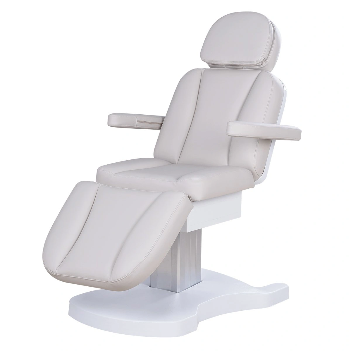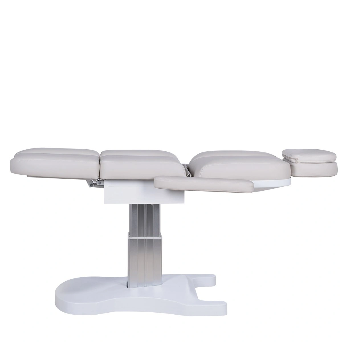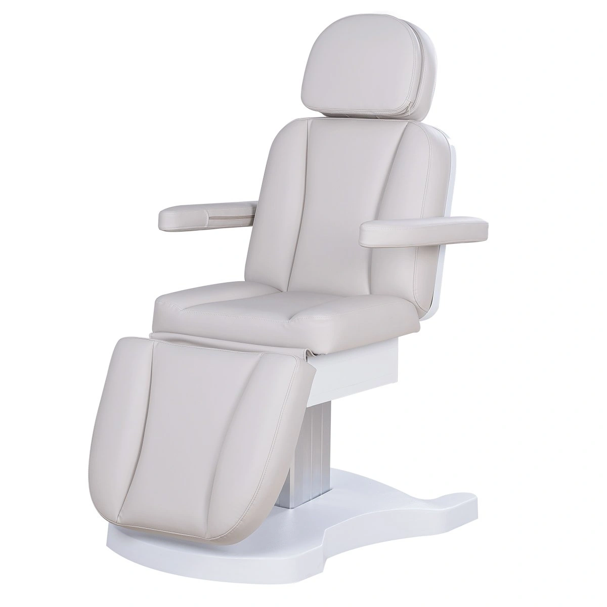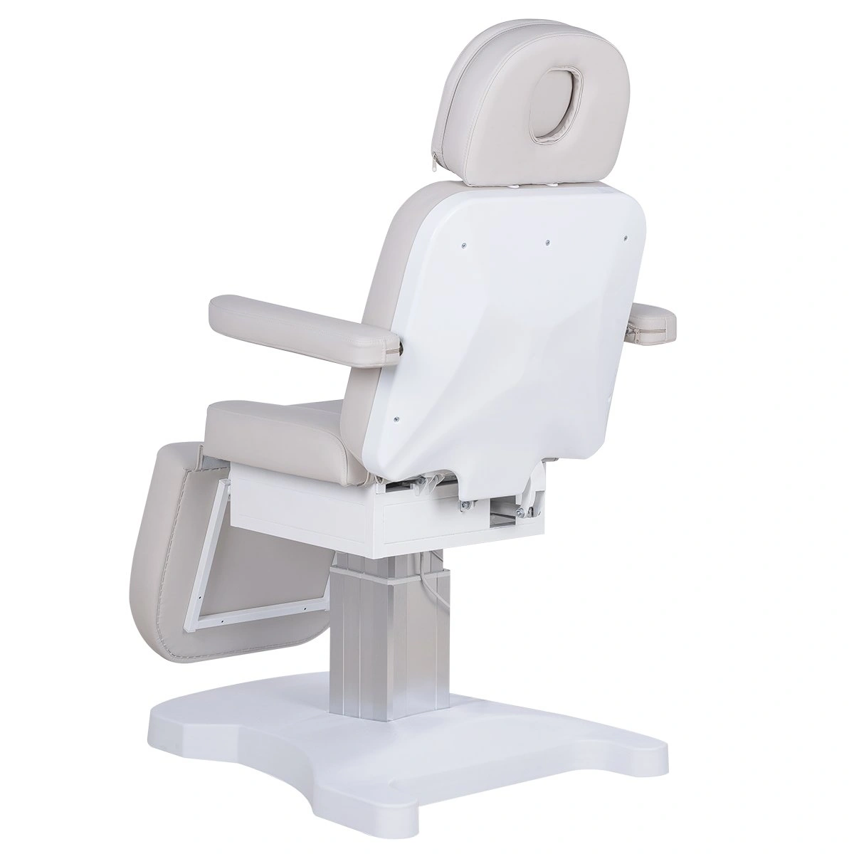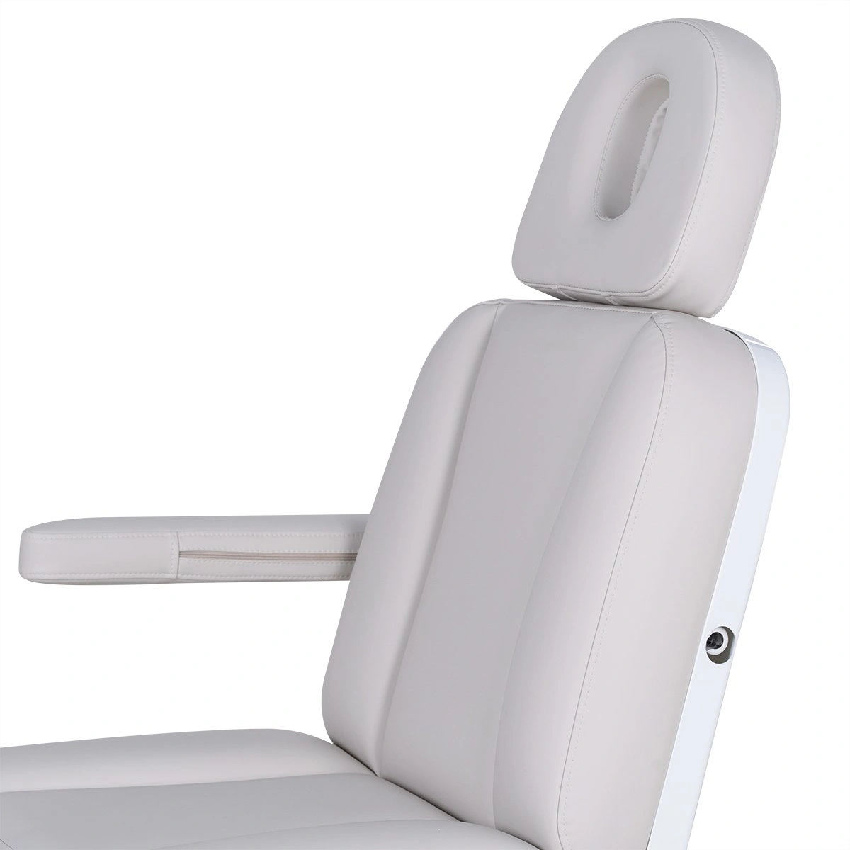 Три электромотора позволяют быстро и без усилий настроить высоту, угол наклона спинки и икроножной секции. Особое внимание уделено комфорту: инновационные подлокотники остаются горизонтальными в любом положении, мягкие элементы повторяют изгибы тела, а подголовник с анатомическим отверстием и подушкой делает процедуры максимально комфортными.