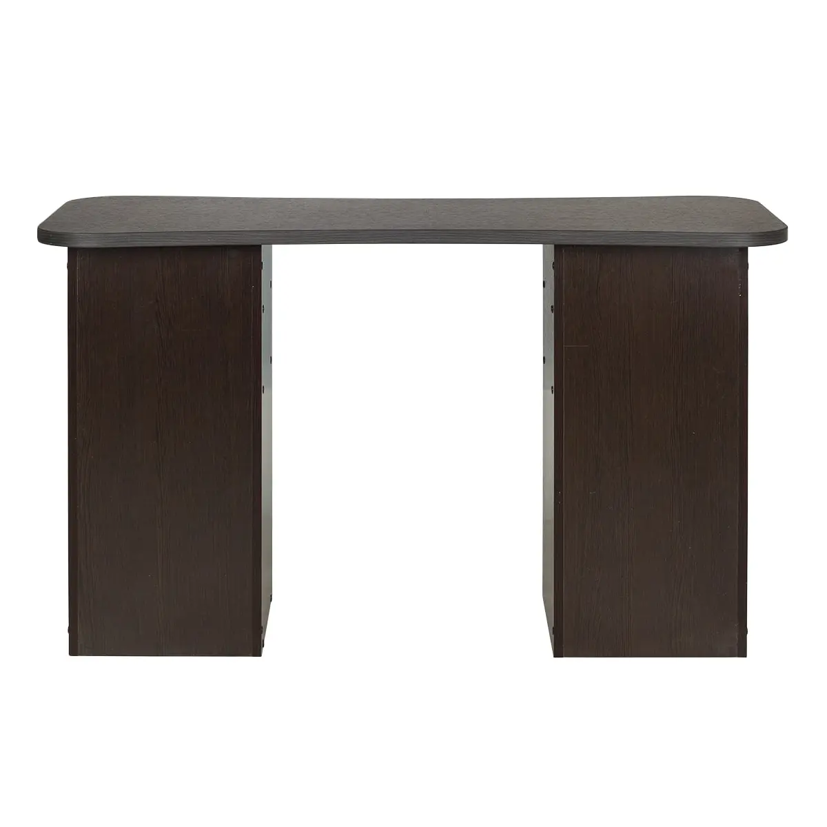 Столешница с плавными изгибами открывает легкий доступ к рукам клиента. На широких краях закругленной формы мастер может поставить аппарат, инструменты и расходные материалы. Под столешницей есть две тумбы по две ниши и по три ящика в каждой. При необходимости ящики можно вынимать.