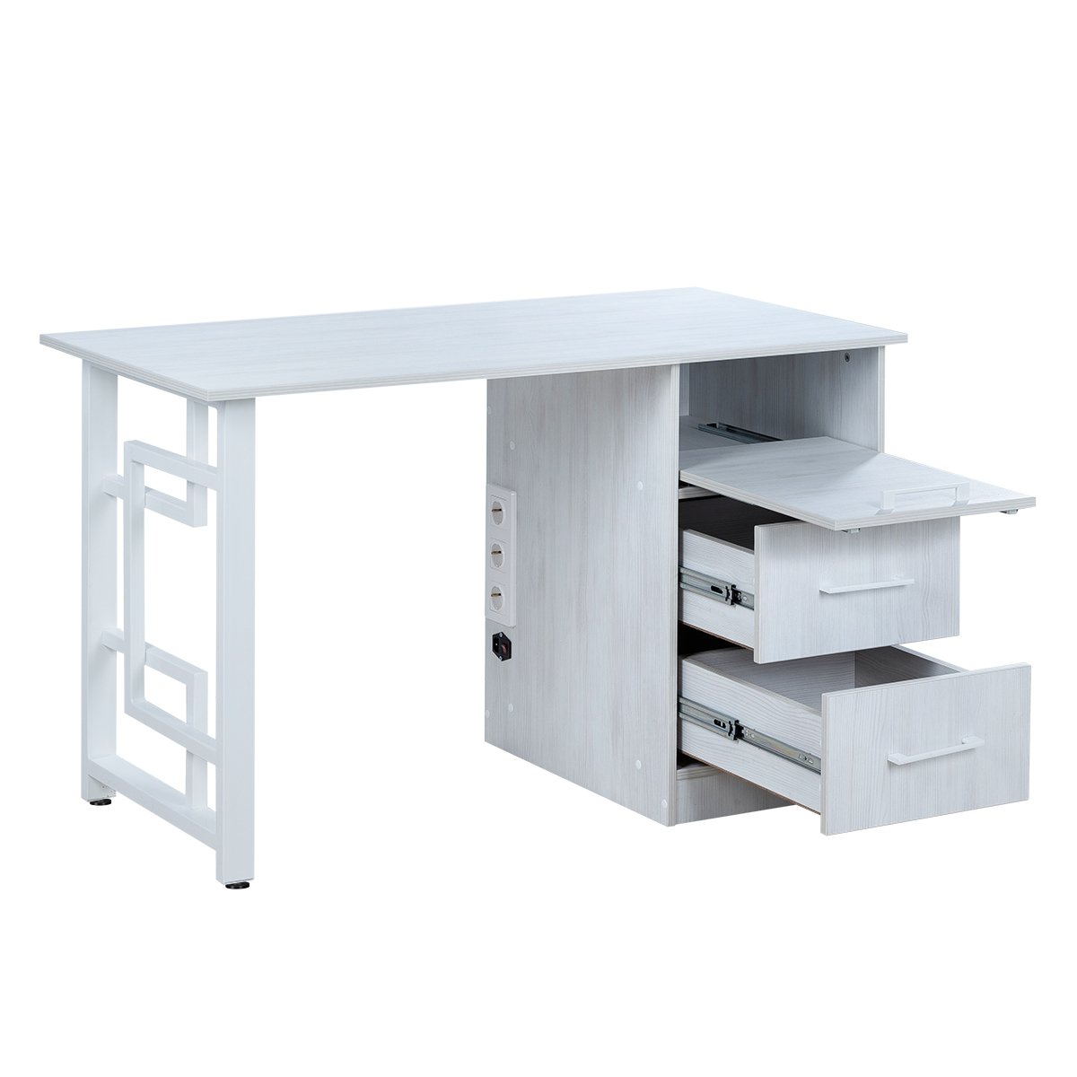 Комплектация: столешница, каркас, 1 тумба, 2 ящика, 1 полка