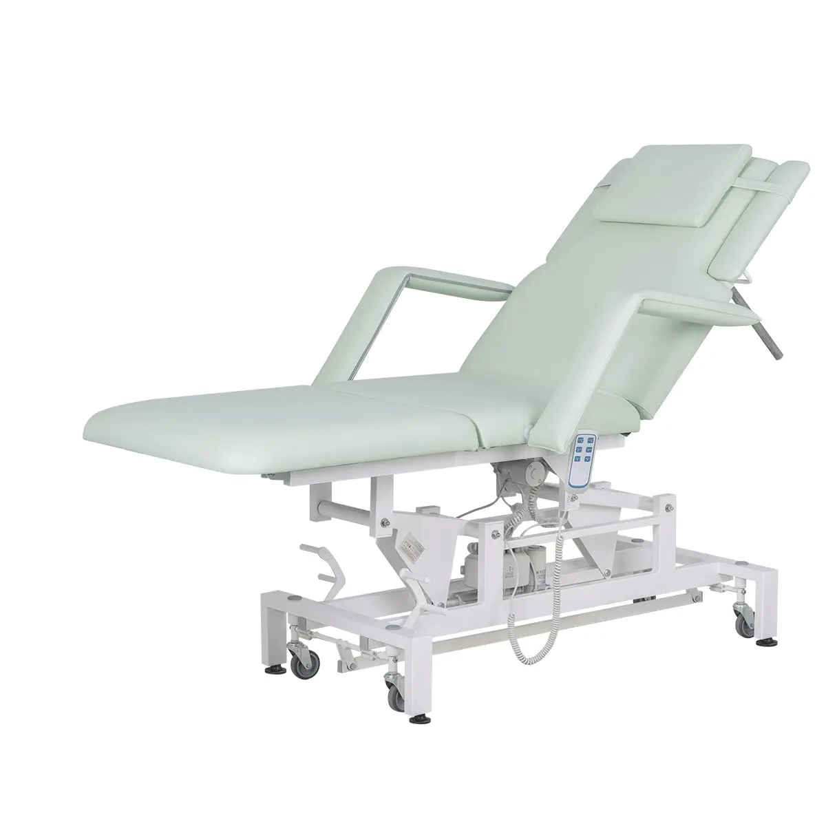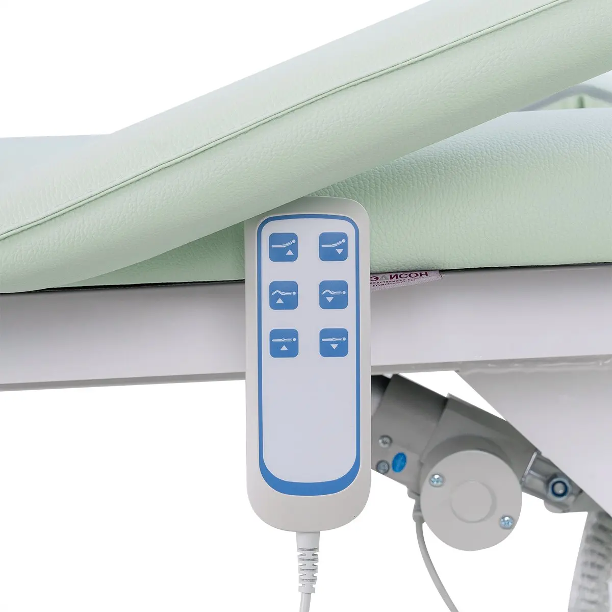 Кушетка массажная МД-849 (Элегия-3А) на колесной базе – это профессиональное оборудование от компании МЭДИСОН. Она разработана для применения в массажном или косметологическом кабинете высокого уровня. Мягкая часть кушетки разделена на три сегмента: сиденье, спинка, элемент для ног. Это значительно повышает комфорт при использовании и обеспечивает необходимую функциональность во время работы. В спинке есть специальный вырез для лица. Для удобного расположения рук по время массажа предусмотрены навесные подлокотники, регулируемые по высоте.