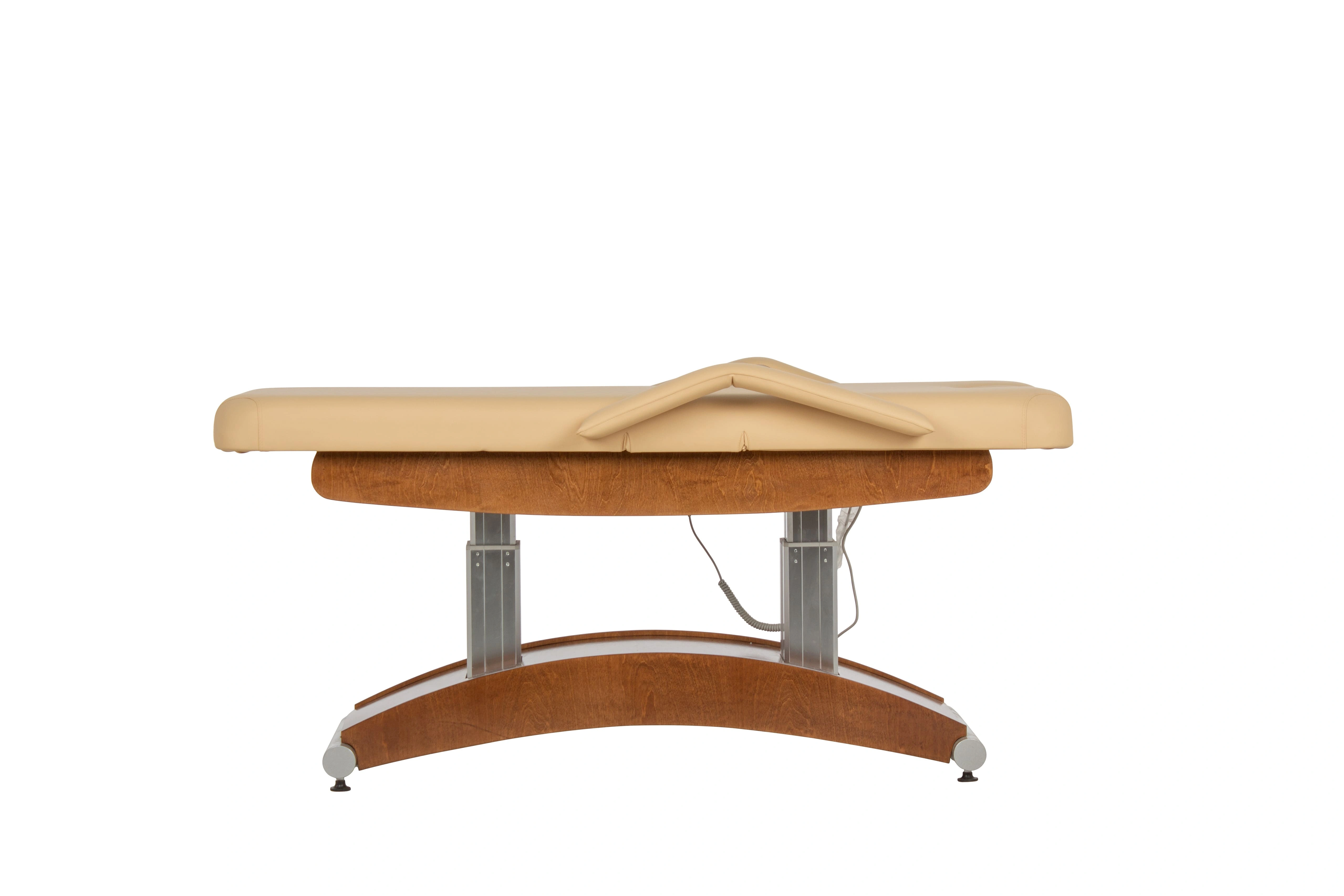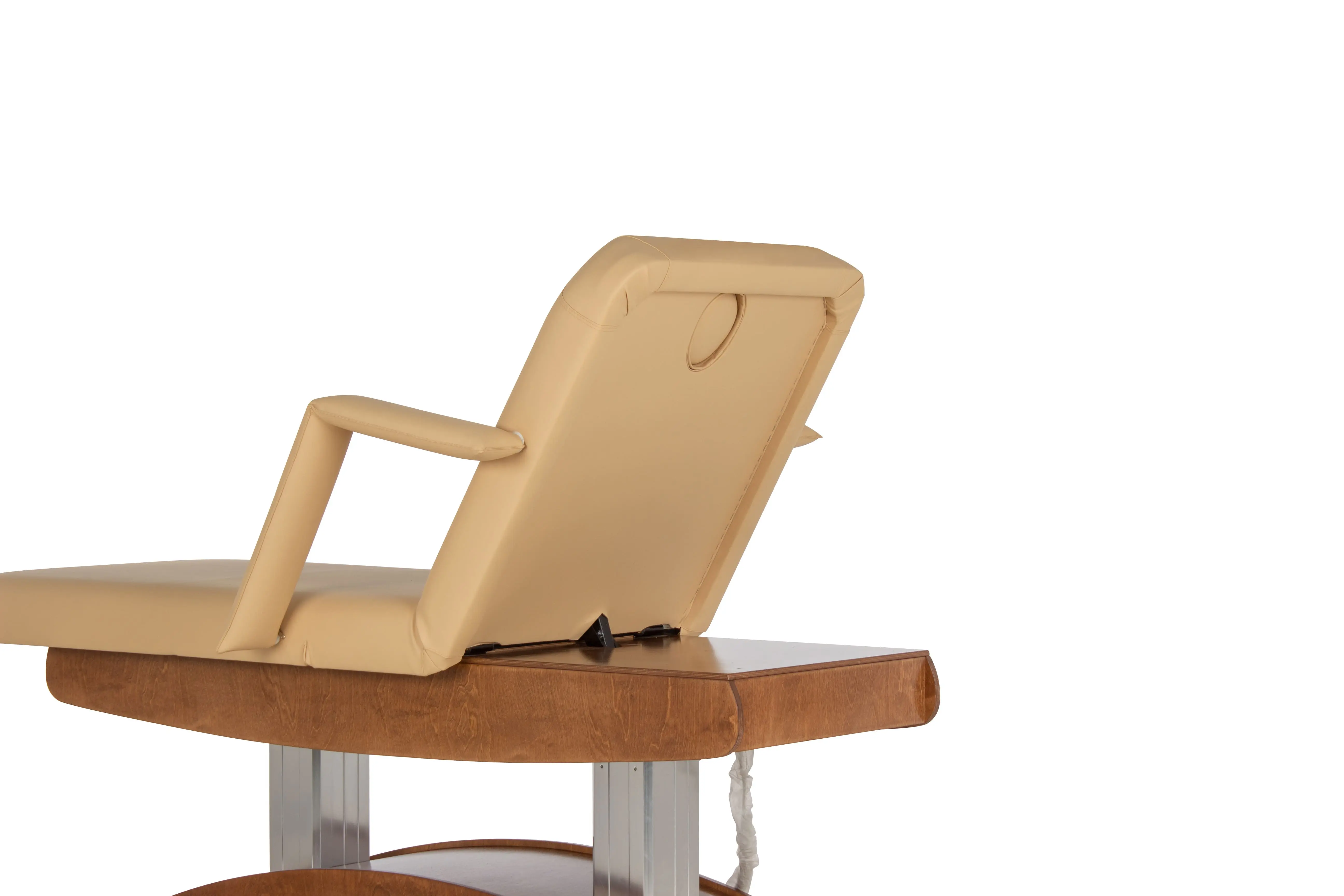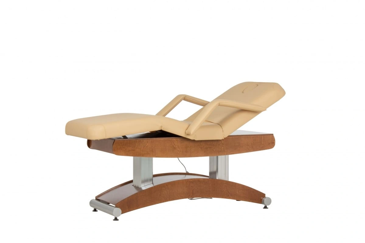 Особенностью СПА-кушетки "Аврора-2" является наличие четырех электроприводов. Они отвечают за регулировку подъема кресла, спинки и за регулировку угла наклона сиденья. Благодаря этому, врач или массажист может легко менять положение кушетки без усилий и лишних движений, уважая комфорт клиента и сохраняя свою работоспособность.
