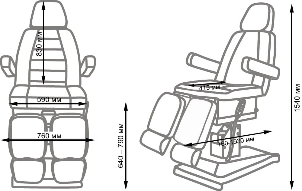 Кресло установлено на надёжный стальной каркас с широким основанием, который отвечает за устойчивость при любых рабочих нагрузках. Металлические детали покрыты порошковой краской, защищающей от влияния коррозии. Данная модель оснащена мощным механизмом регулировки – гидравликой. Также в кресле можно изменять угол наклона спинки и подножек с помощью механики. Подлокотники регулируются и при необходимости снимаются.
