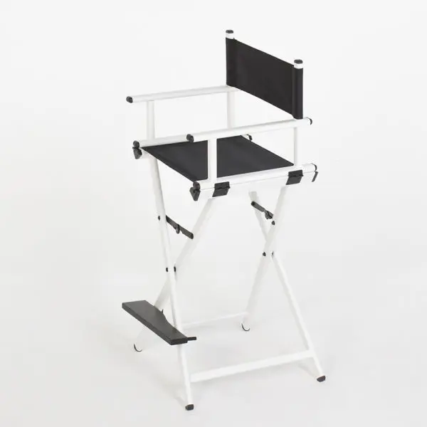 Каркас кресла для визажиста изготовлен из алюминия - этот металл имеет высокую прочность, но в тоже время достаточно легкий. Для изготовления спинки и сидения использована качественная ткань, которая не поддаётся растяжению. Тканевые элементы просты в уходе, легко снимаются для чистки или замены.