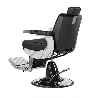 В комфортабельном кресле учтены все нюансы, которые помогут клиенту расслабиться, а мастеру комфортно работать. Благодаря удобному подголовнику клиент сможет откинуть голову во время бритья опасной бритвой. Для рук есть широкие подлокотники. Чтобы ноги клиента не находились в напряженном состоянии в кресле предусмотрена широкая подножка.