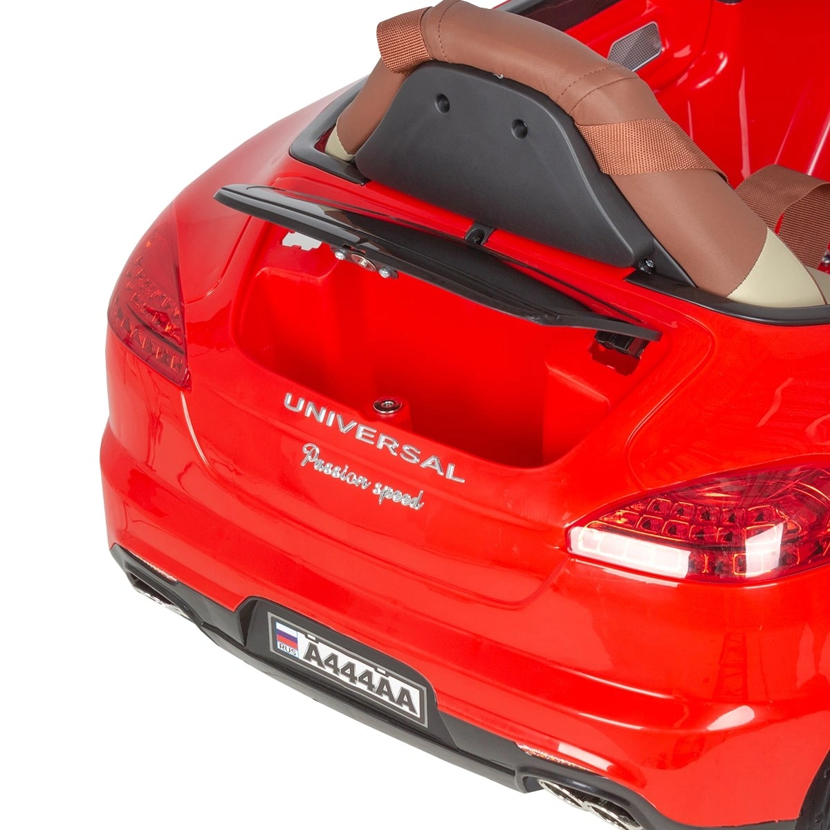 Машинка: оснащена удобным сиденьем с удерживающим ремнем, рулем, приборной панелью, фарами и задними фонарями, магнитолой и колонками, колесами.