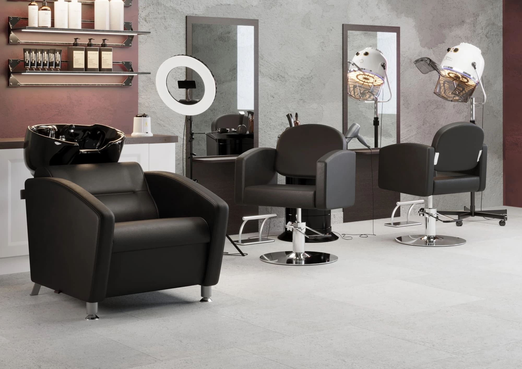 Удобное сидение с мягкой спинкой в сочетании с подлокотниками помогут обеспечить комфорт каждому клиенту. В качестве наполнителя применён плотный поролон, который не образует вмятин в течение длительного срока эксплуатации. Для обшивки использована прочная экокожа, устойчивая к разрывам, растягиванию и протиранию. Уход за поверхностью необычайно прост, потому что материал не впитывает влагу и грязь. Пыль с такой мебели можно удалить сухой текстильной салфеткой, а пятна от косметических продуктов стираются специальными моющими составами для кожи без хлора.