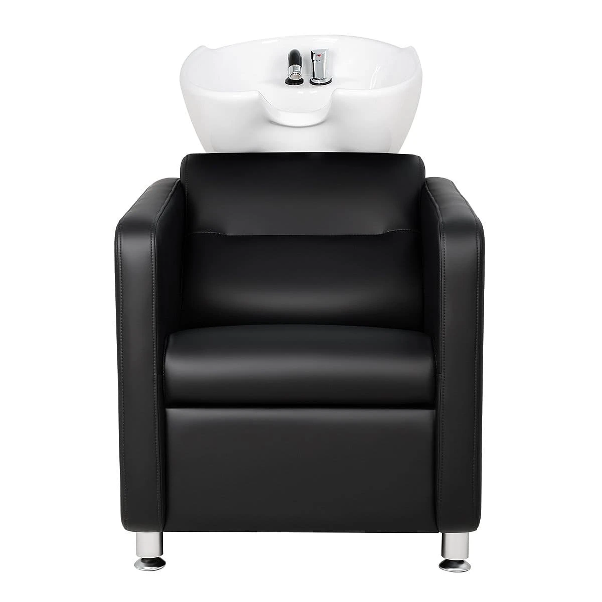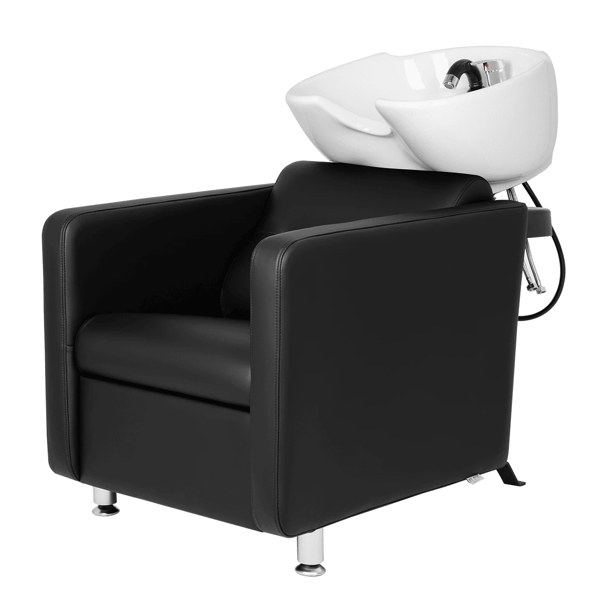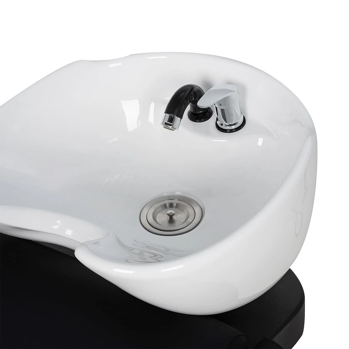 В базовую комплектацию входит глубокая белая керамическая раковина с набором необходимой сантехники. По желанию вы можете выбрать такую же раковину из черной керамики или глубокую, черного или белого цвета. Для индивидуального удобства клиентов наклон раковины регулируется. Универсальная модель, подойдет к любой модели кресла и в любой интерьер.