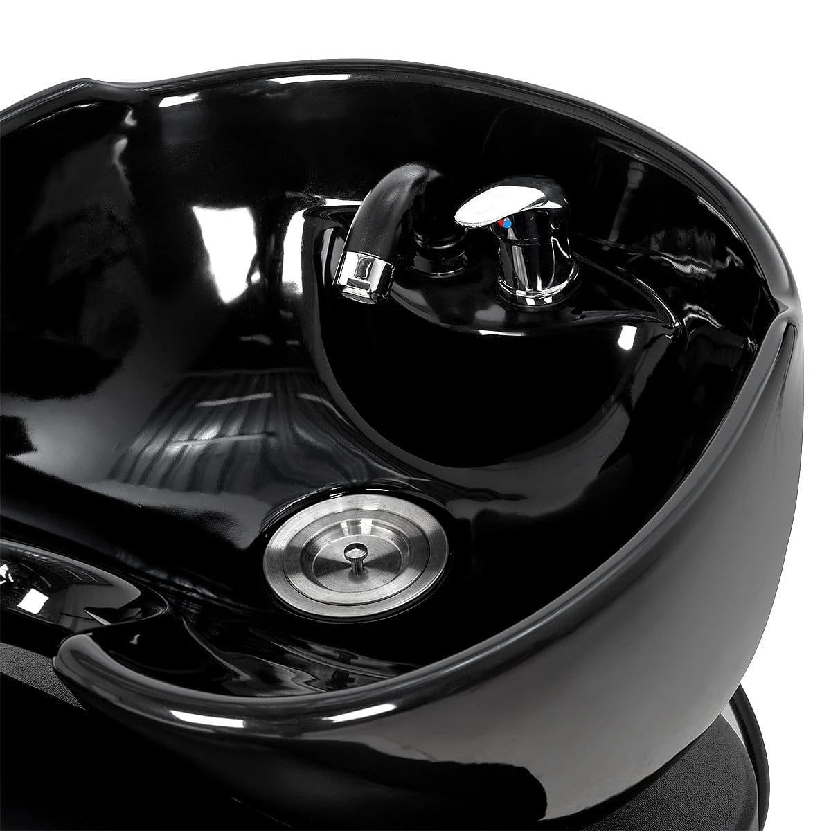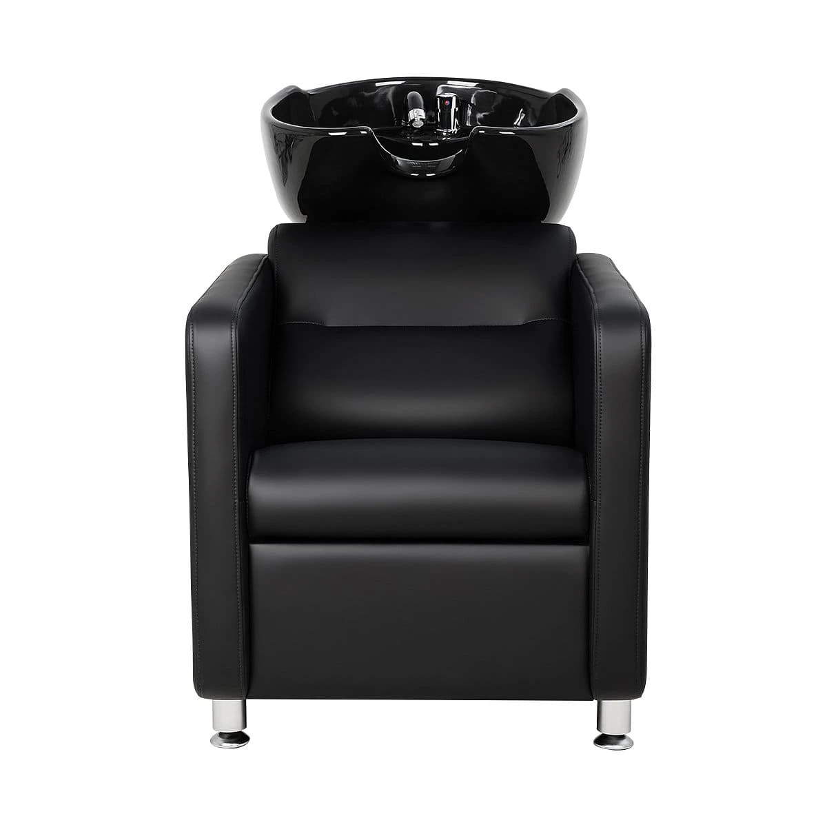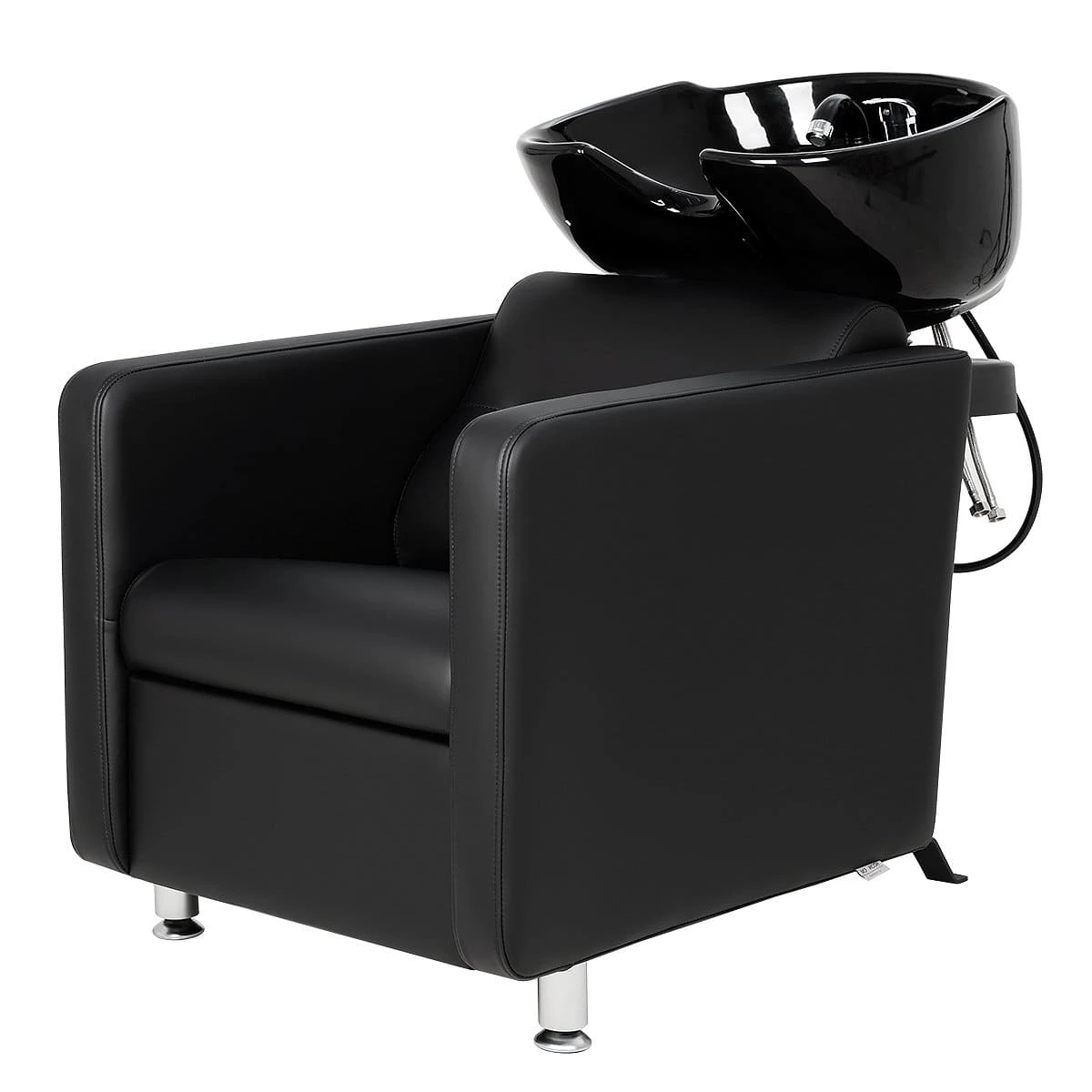 В базовую комплектацию входит глубокая белая керамическая раковина с набором необходимой сантехники. По желанию вы можете выбрать такую же раковину из черной керамики или глубокую, черного или белого цвета. Для индивидуального удобства клиентов наклон раковины регулируется. Универсальная модель, подойдет к любой модели кресла и в любой интерьер.