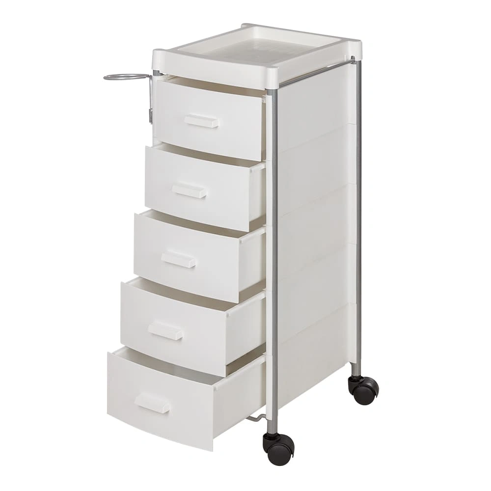 На верхней полке можно разложить инструмент первой необходимости. Остальные приспособления и косметологические средства можно компактно разместить в ящиках. С маневренными колесами мастер может перемещать парикмахерское оборудование по рабочей зоне. Благодаря компактным размерам тележка подойдет даже для помещений с малой площадью.