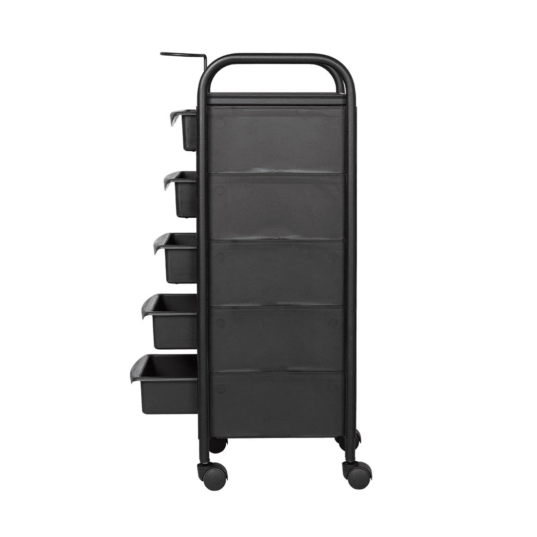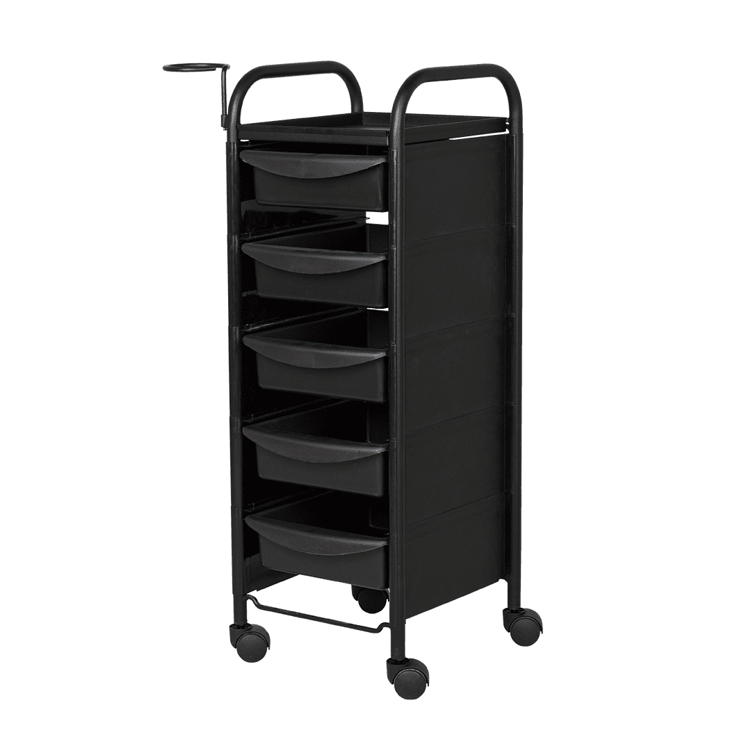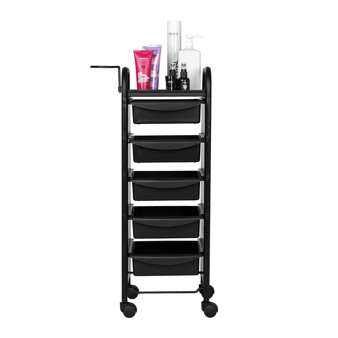 Купить тележку парикмахерскую М-02 черного цвета можно с пятью вместительными выдвижными ящиками из ударопрочного пластика. Также для инструментов и прочих рабочих принадлежностей предусмотрена функциональная полочка. Для дополнительного удобства во время работы к каркасу прикреплен съемный фенодержатель. В нашем магазине парикмахерская тележка М-02 представлена в черном, серебристом, красном, фиолетовом, зеленом, оранжевом и белом цвете, а также в комбинации различных цветов.
