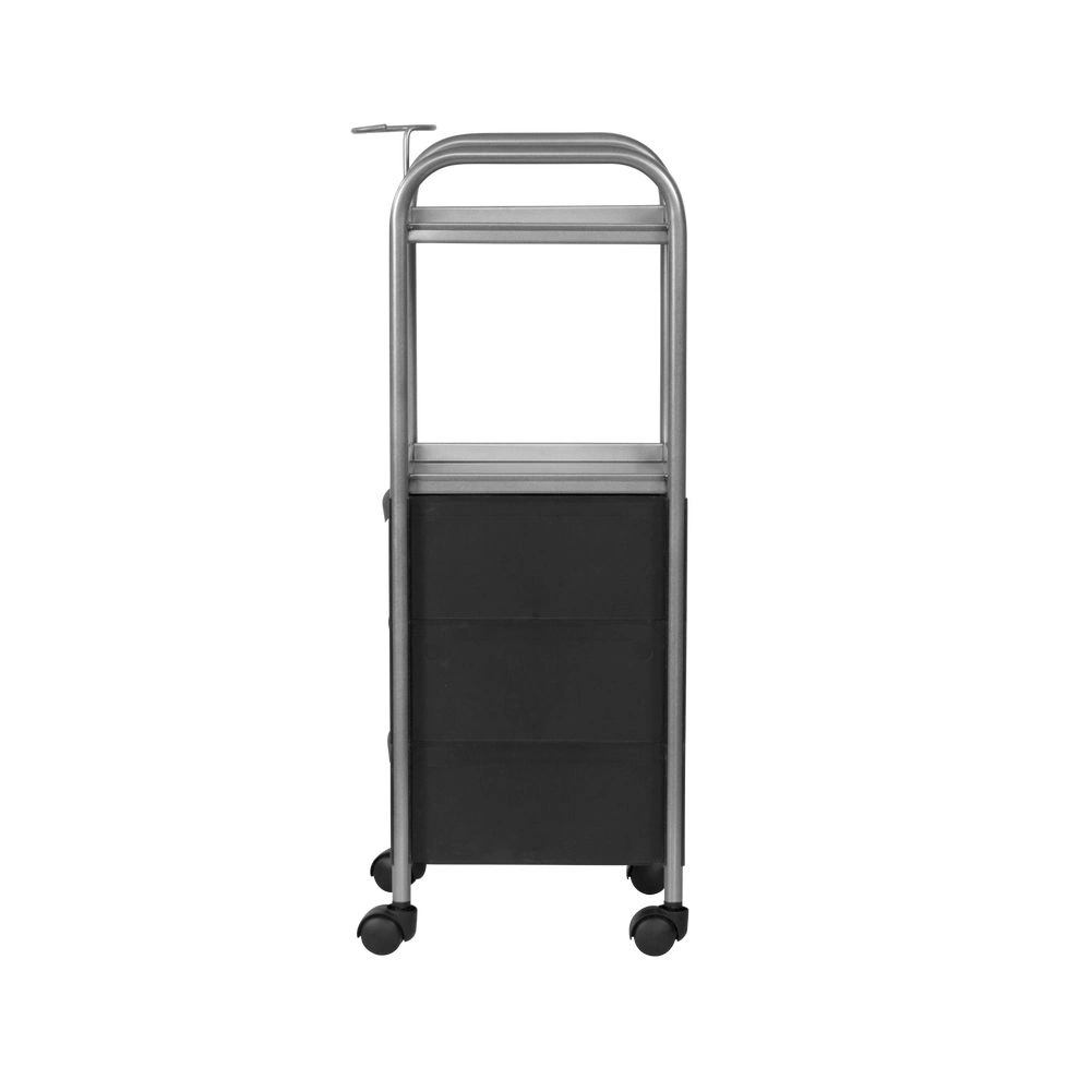 Каркас, полочки и фенодержатель изготовлены из прочного металла. Для защиты от коррозии и влаги на поверхность нанесен слой краски. Для создания боковин и ящиков использован качественный пластик устойчивый к влиянию очищающих средств. Пластиковые колеса предотвратят скольжение конструкции.