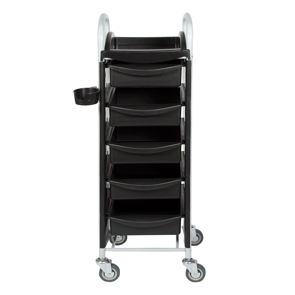 Передвижная тележка парикмахерская Т-20 черного цвета производится из качественного пластика, который устойчив к дезинфекциям и воздействию косметических препаратов. Надежность и устойчивость данного оборудования обеспечивает прочный каркас из металла с влагозащитным покрытием. В комплектацию тележки входит пять удобных ящиков. Они выдвижные и рассчитаны на размещение всех необходимых в работе материалов, приборов, инструментов и аксессуаров.