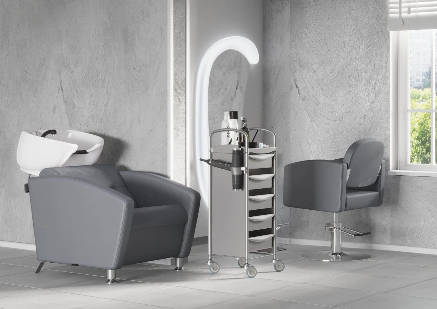 Тележка установлена на резиновые колеса в металлическом каркасе, благодаря которым ее можно легко перемещать по парикмахерскому залу. Колеса не царапают пол и передвигаются бесшумно. К каркасу крепится съемный фенодержатель из качественного черного пластика. Боковины и задняя стенка полностью закрывают внутреннее пространство для ящиков, что делает тележку практичной и удобной в работе. В нашем интернет-магазине тележка парикмахерская Т-20 представлена в черном цвете, который идеально сочетается с любыми цветами интерьера.