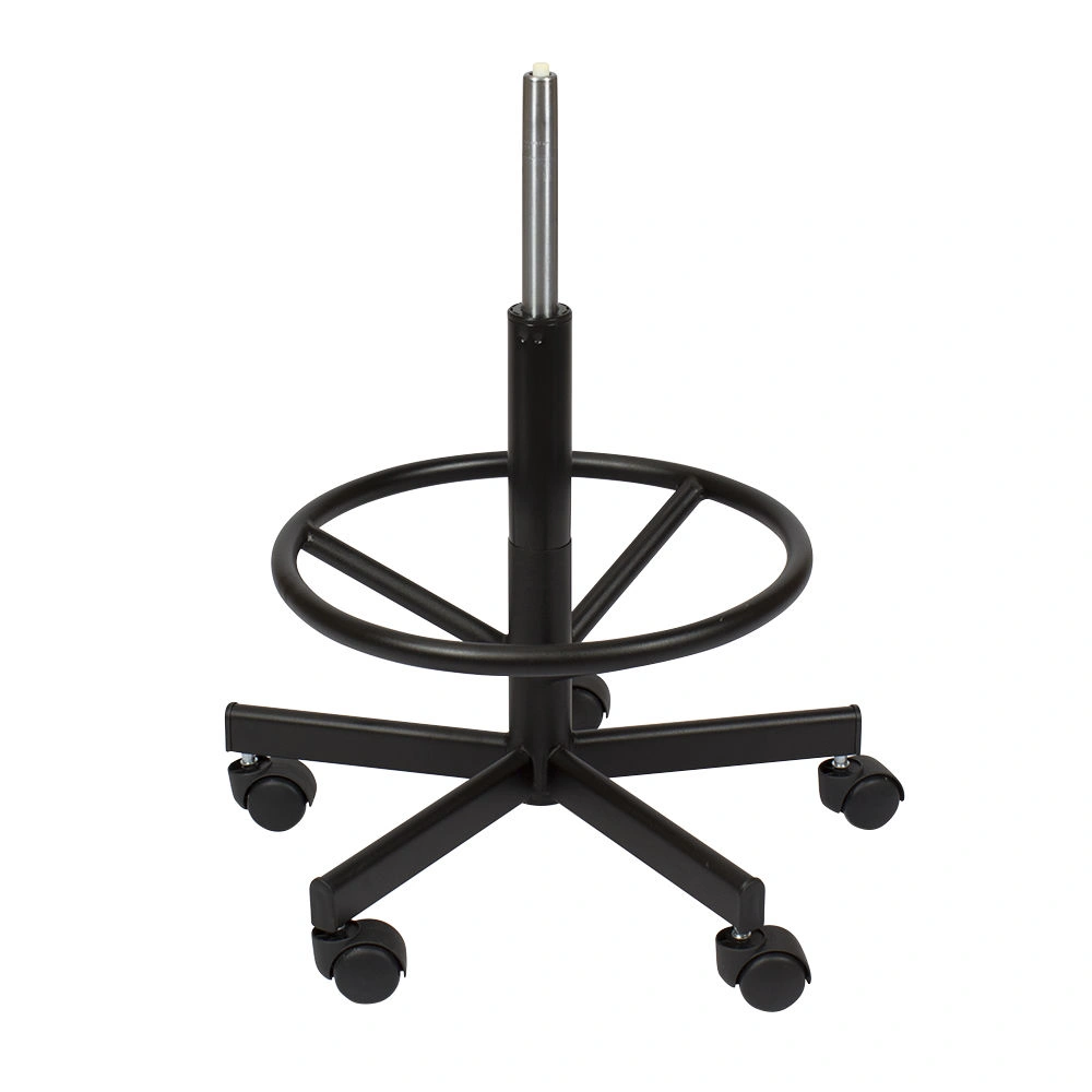 В комплектацию входит устойчивое пятилучье с опорой под ноги на колесах. Оно изготовлено из металла и окрашенное специальной порошковой краской в черный цвет. Наличие колес позволяет легко перемещаться на кресле по помещению. Колеса из прочного пластика не царапают поверхность пола и передвигаются практически бесшумно. Неоспоримым преимуществом этой модели является удобная круглая подставка, которая позволит снять напряжение с мышц ног во время работы и перерыва.