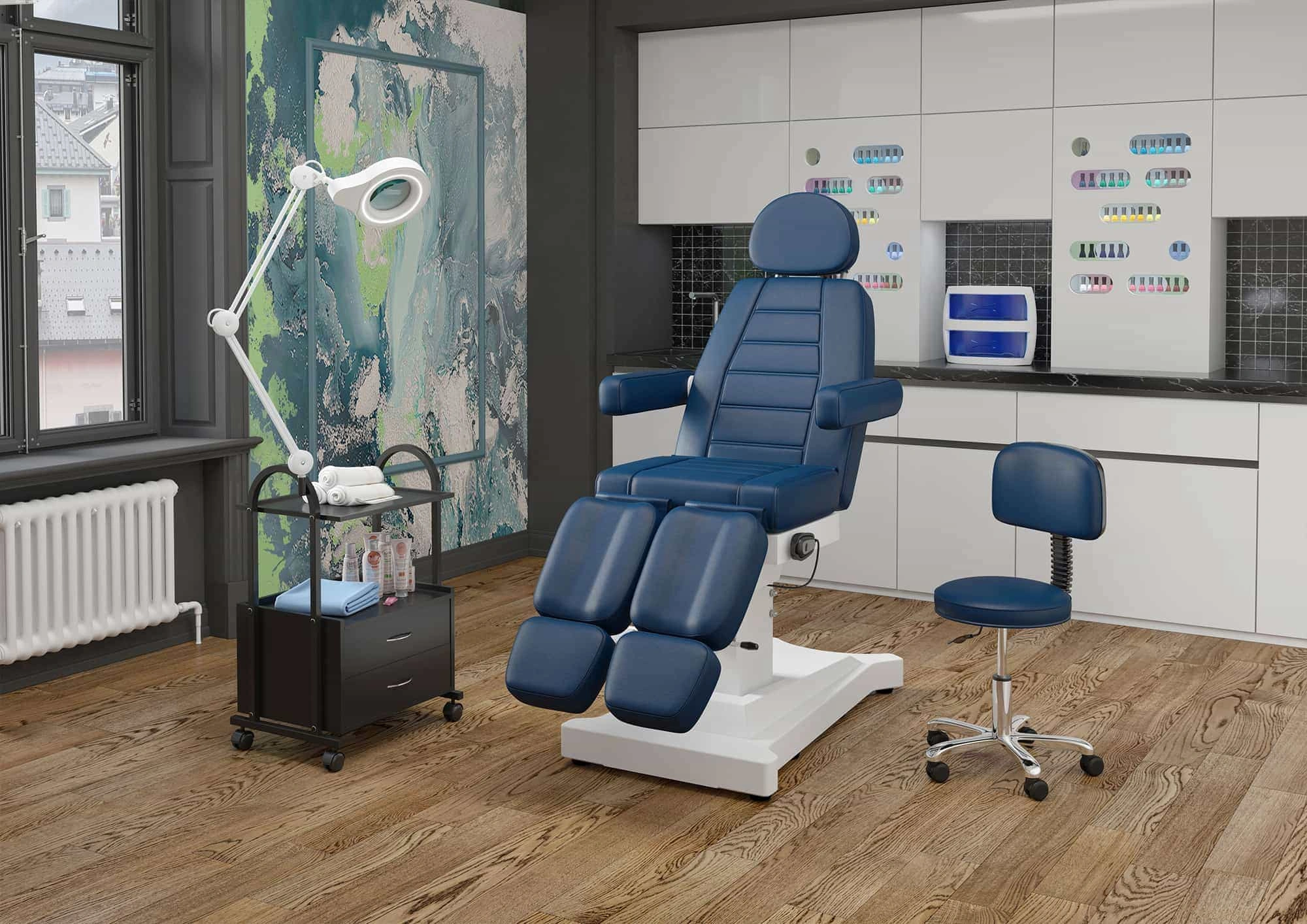 Стул мастера Астек низкий, со спинкой и хромированным основанием сочетает в себе практичность и стильный дизайн. Он подойдет для большинства мастеров в сфере бьюти индустрии, особенно для специалистов, работающих в педикюрных, косметологических кабинетах, тату-салонах. Мягкая часть имеет обшивку из качественной мягкой экокожи. Этот материал приятен на ощупь, долговечен, устойчив к воздействию моющих и дезинфицирующих средств. В качестве наполнителя используется упругий пенополиуретан. Эргономичная удобная спинка позволяет снизить утомляемость и уменьшить напряжение мышц поясницы во время выполнения рабочих манипуляций.