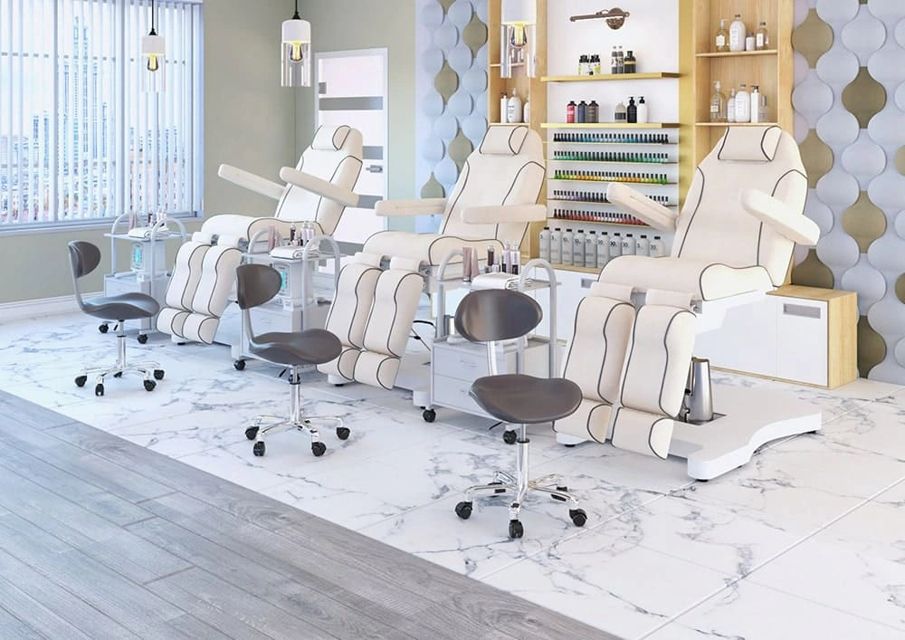 Благодаря сидению в форме седла уменьшается нагрузка на позвоночник и межпозвоночные диски, а также отсутствует давление на заднюю поверхность бедер. Удобная спинка отвечает за поддержку правильной осанки. С таким стулом для мастера значительно снимется напряжение в спине и появится возможность отдохнуть во время напряженного рабочего дня. Благодаря маневренным колесам стул можно перемещать в любую точку салона, не вставая с него. Надежный пневматический подъемник поможет выбрать оптимальную высоту сидения для комфортной работы.