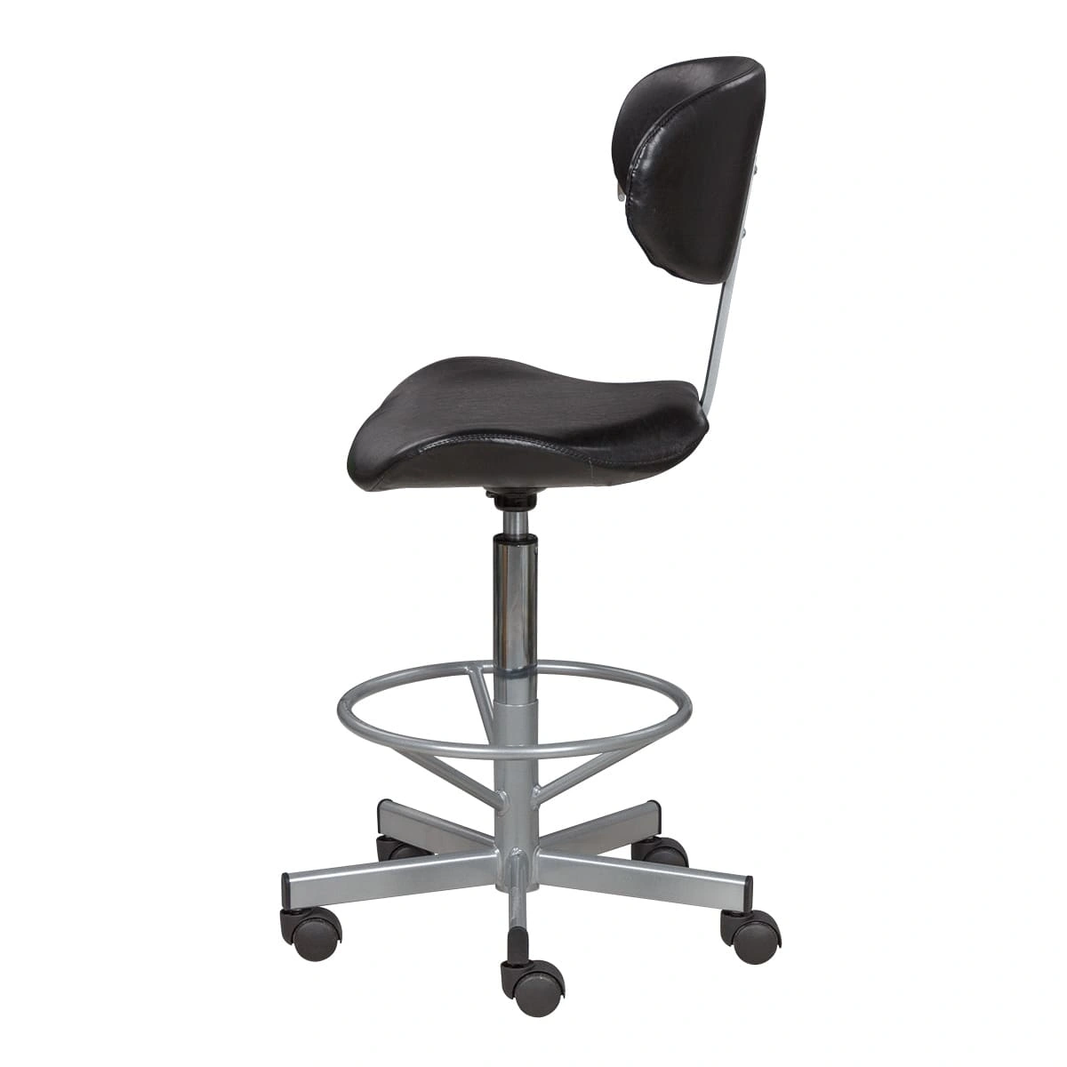 Стул мастера Кейси (высокий, хром с опорой) – удобное и стильное решение для специалистов, которым необходимо долго работать в положении сидя.