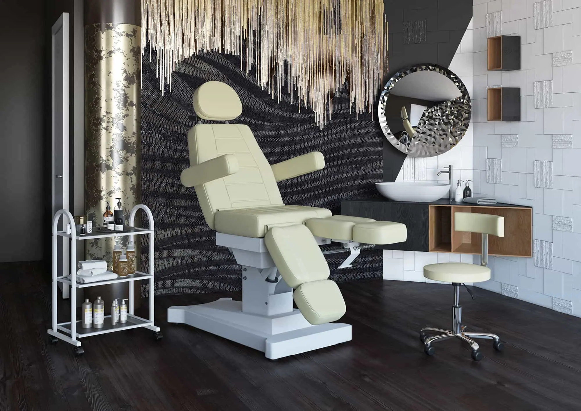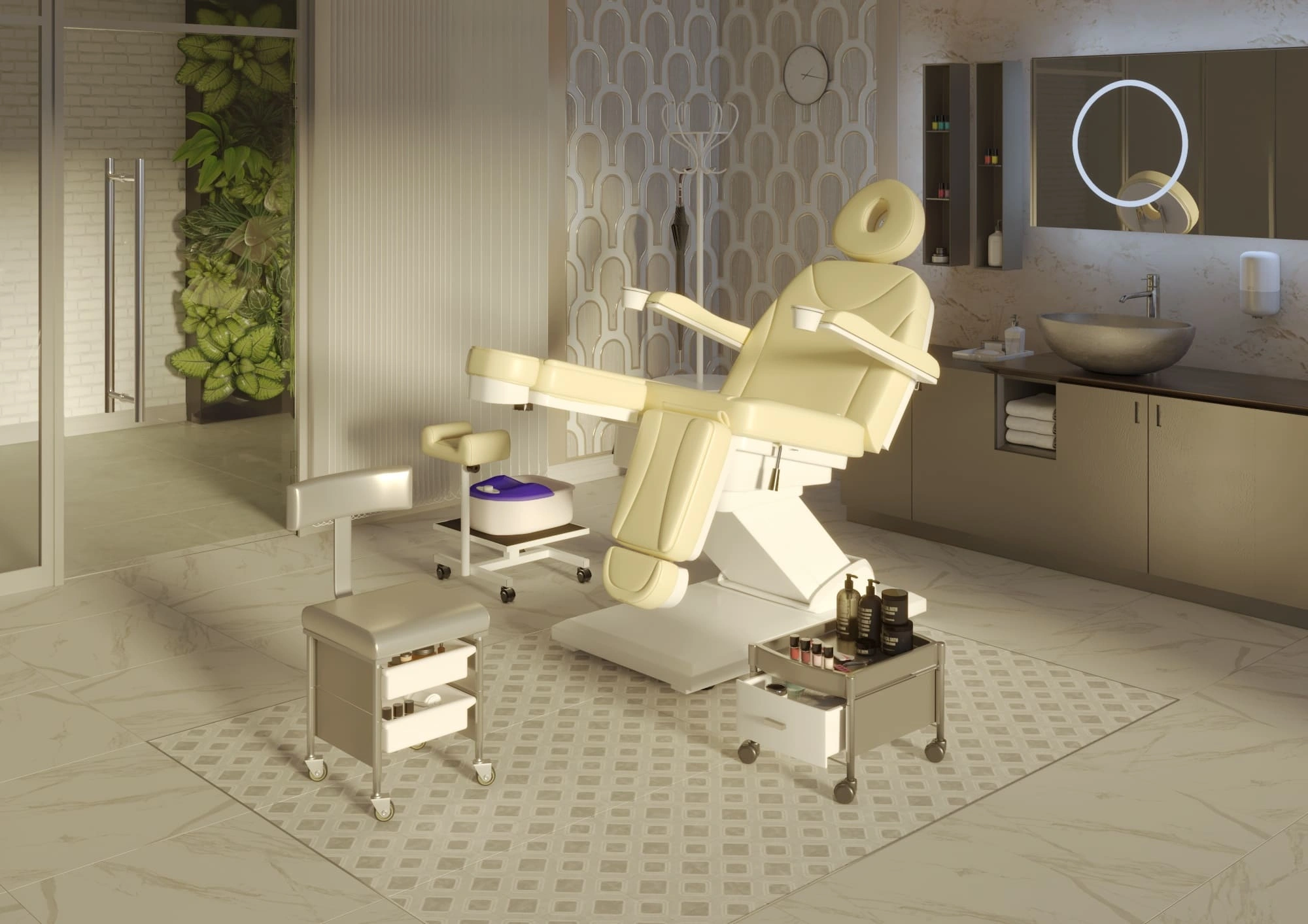 Комплект мебели и аксессуаров для педикюрного кабинета собран профессионалами для обустройства педикюрных и универсальных косметологических кабинетов. В нем есть все необходимое для эффективной и слаженной работы: удобное педикюрное кресло на электроприводе, стул для специалиста, столик косметолога и аппарат для маникюра/педикюра.