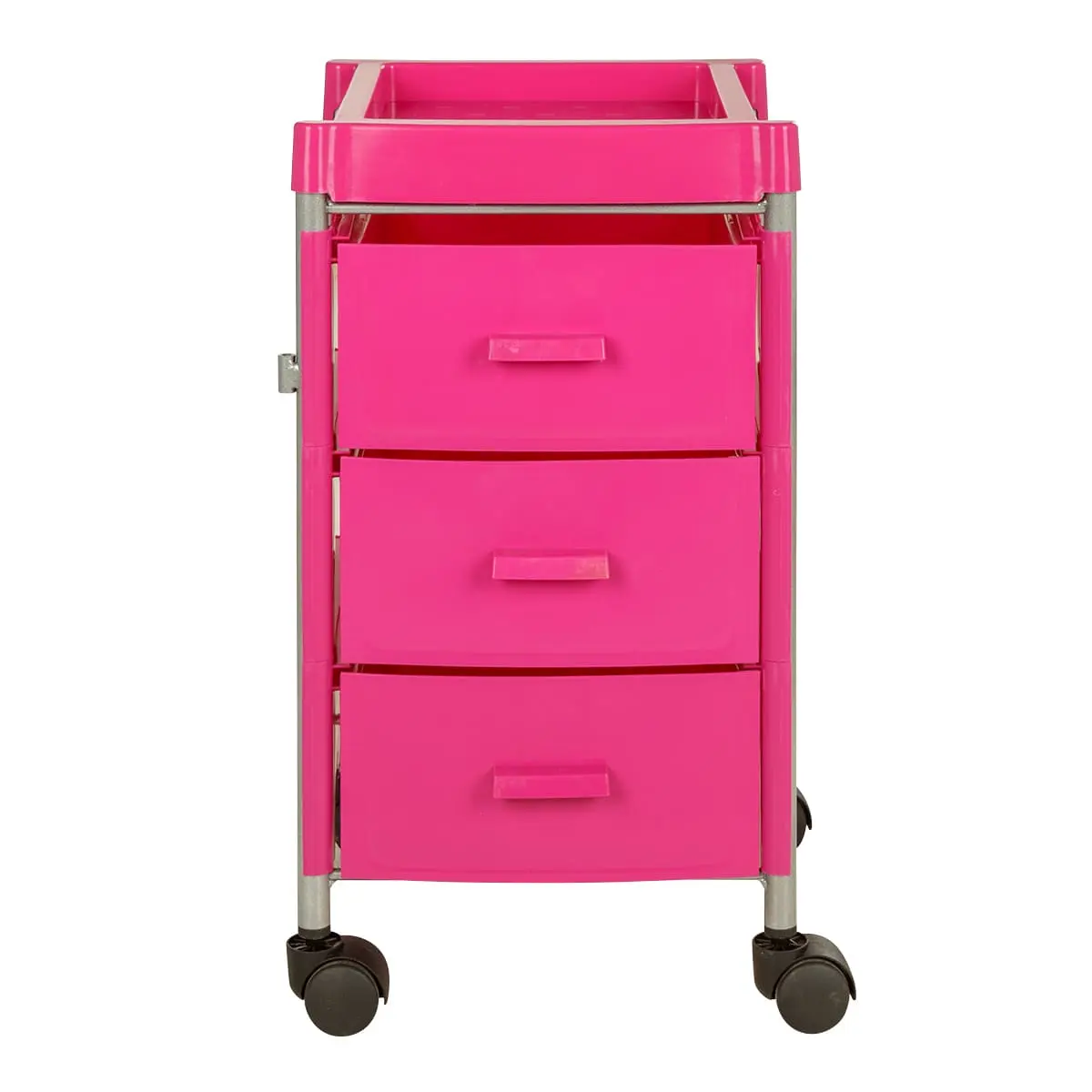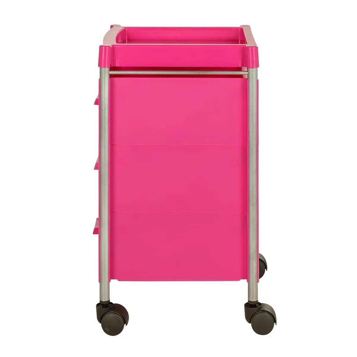 Качественные материалы и фурнитура обеспечат долгий эксплуатационный срок. Для изготовления каркаса использована прочная сталь. Крышка, стены и ящики выполнены из качественного пластика. Материал легко моется, не деформируется при дезинфекции и случайном попадании косметических препаратов. Пластиковые колеса не способны навредить напольному покрытию.