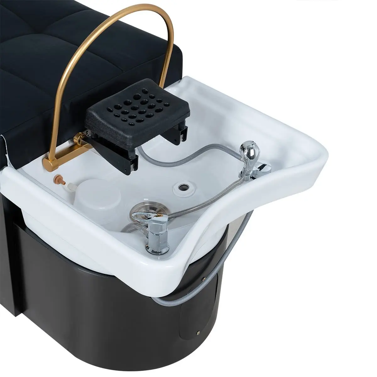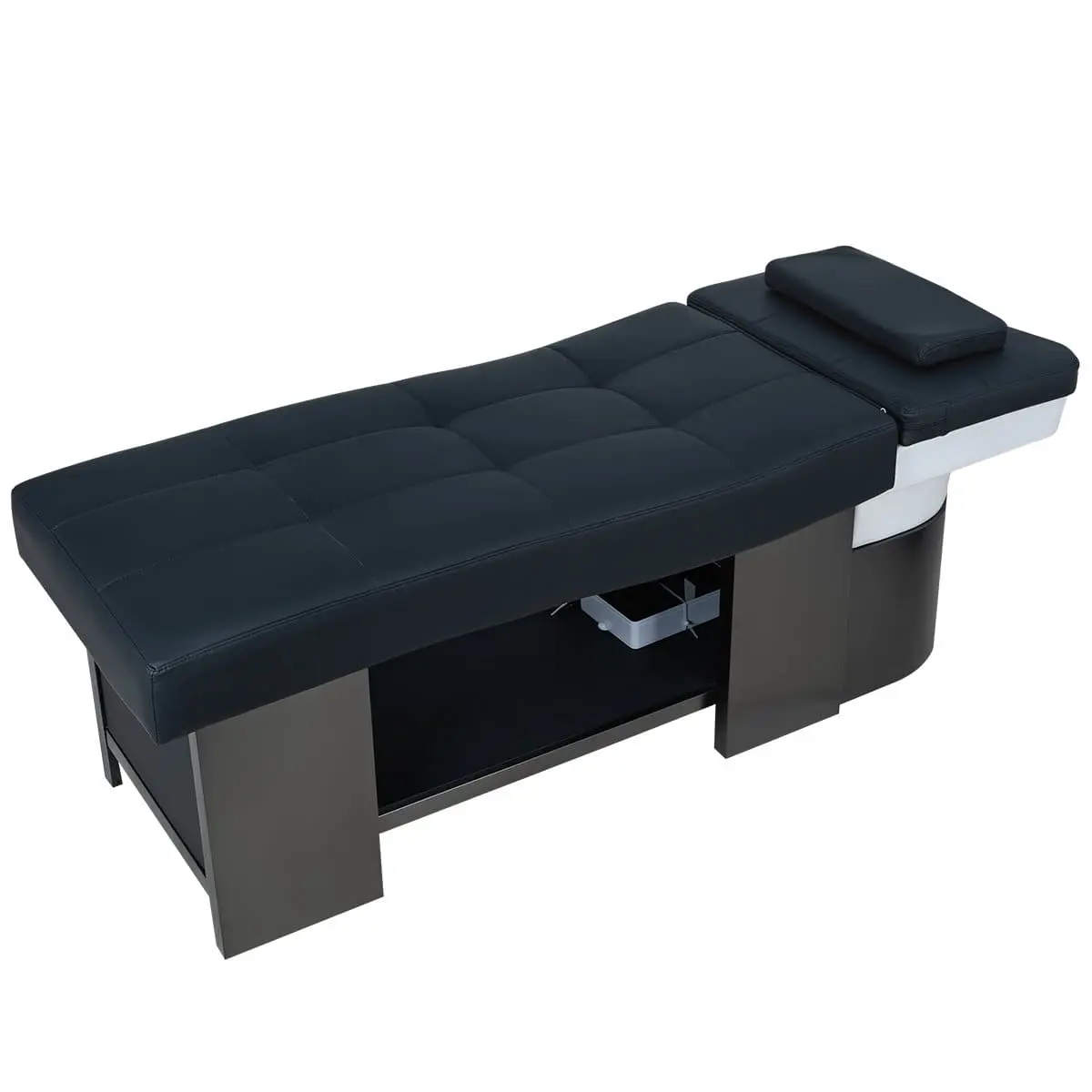 МД-616 — спа-кушетка для процедуры head spa, которая стремительно набирает популярность. Удобное изогнутое ложе мягко поддерживает тело, создавая ощущение невесомости, металлический каркас обеспечивает надёжность и устойчивость, сенсорная переносная панель позволяет мастеру легко регулировать функции, полка под кушеткой — для удобного размещения аксессуаров, а дуга для аква-массажа дарит роскошный водный релакс.