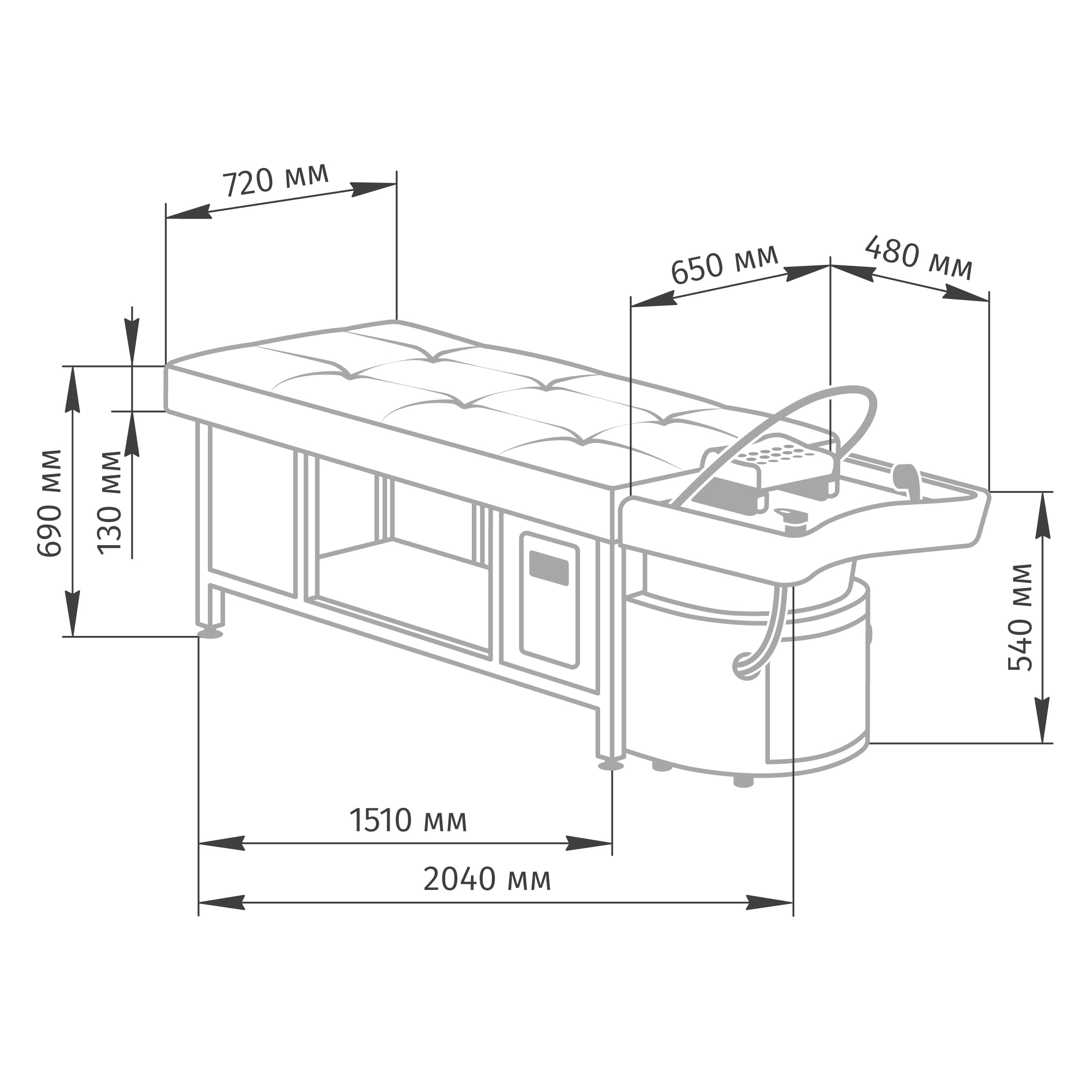 Кушетка для head-spa Наоми схема